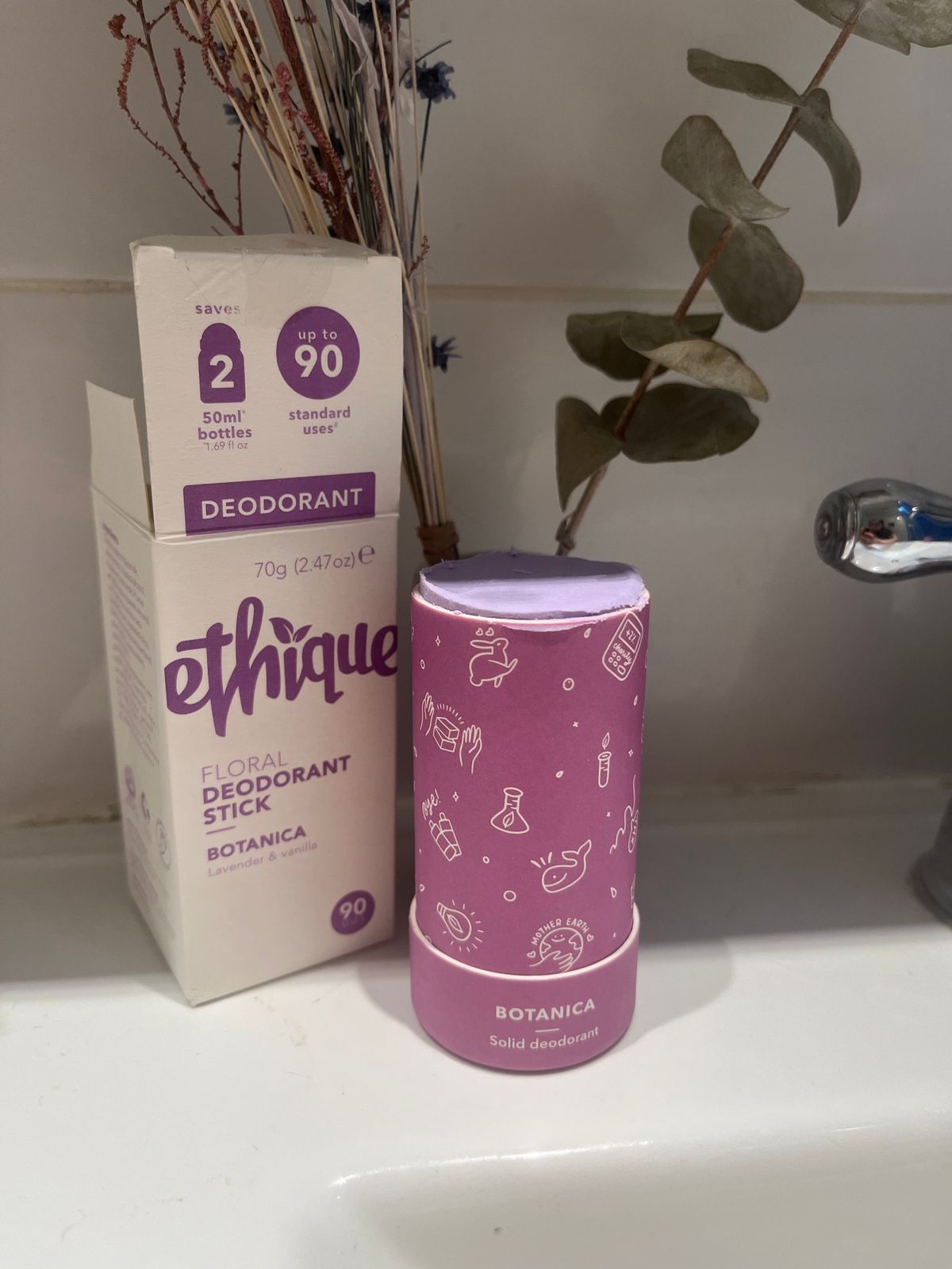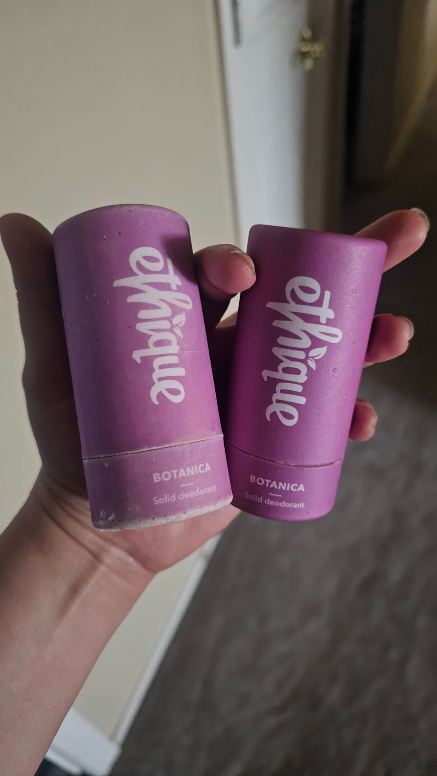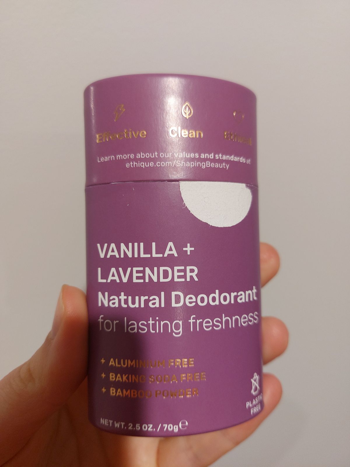 I’m elated about finally finding a natural deodorant that works! The smell is great too. My only complaint is that the purple color is noticeable on fair skin and could show up on white clothing too. My suggestion is to lose the color, this is an amazing product that doesn’t need to be purple!