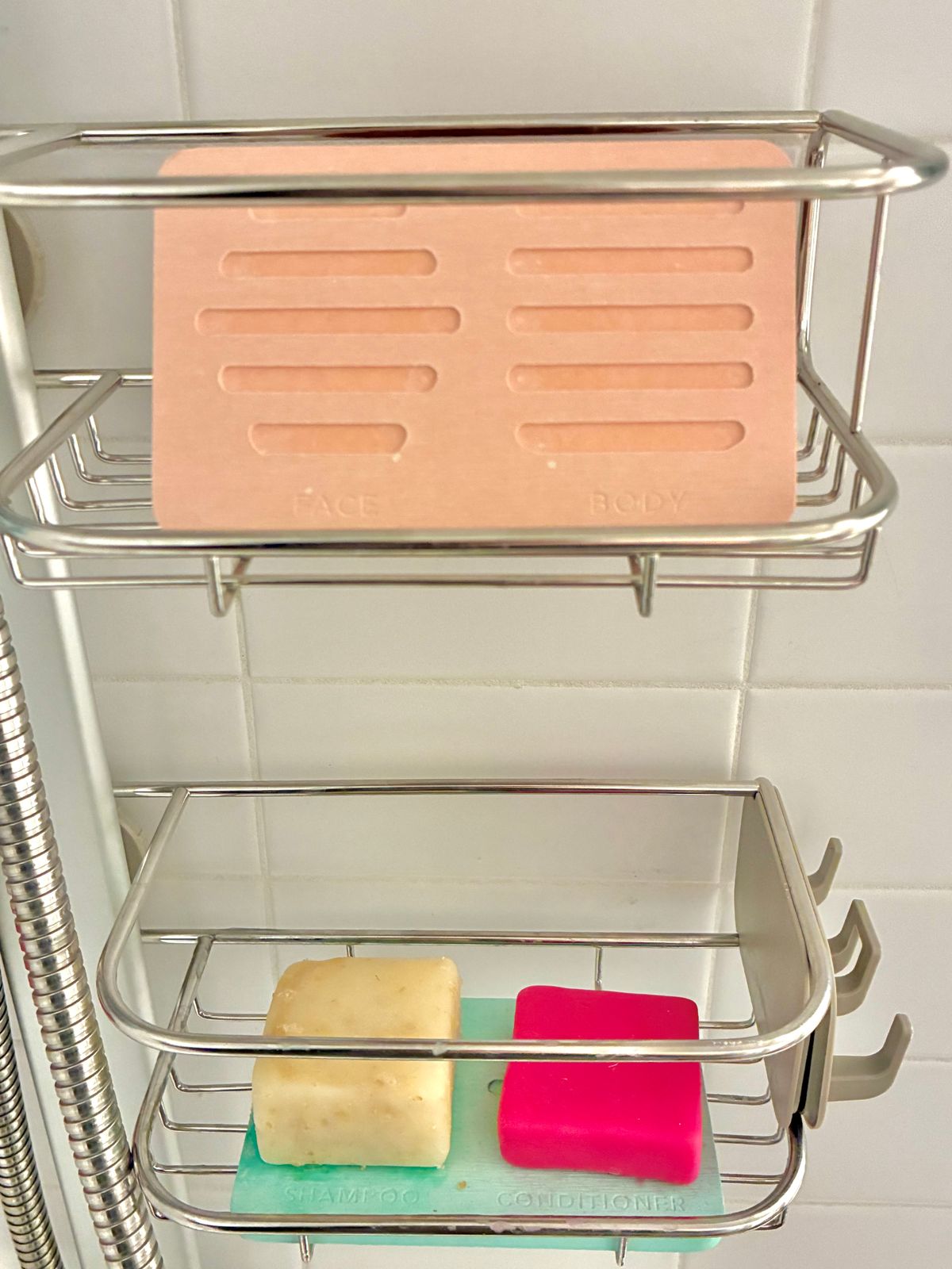 This storage tray is engraved with face and body labels to help distinguish your bars in the shower or bath.